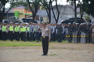 Polres Pagar Alam mengelar apel pergeseran pasukan personil pengamanan TPS Pemilihan Gubernur dan Wakil Gubernur Sumsel, dan Pemilihan Walikota dan Wakil Walikota Pagar Alam, di Lapangan Merdeka Alun-alun Utara, Selasa (26/6/2018).
