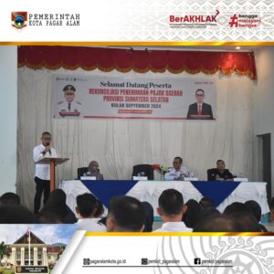 PAGAR ALAM – Pj Walikota Pagar Alam H. Lusapta Yudha Kurnia diwakili oleh Asisten III Bidang Administrasi Umum Sekretariat Daerah Kota (Setdako) Pagar Alam H. Hermawan, menghadiri sekaligus membuka secara resmi acara Rekonsiliasi Penerimaan Pajak Daerah Provinsi Sumatera Selatan Bulan Agustus oleh Badan Pendapatan Daerah (Bapenda) Provinsi Sumatera Selatan, yang diselenggarakan di Gedung Serbaguna Villa Gunung Gare Kota Pagar Alam, pada Rabu (04/09/2024).