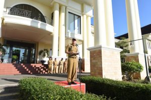 Walikota Alpian Maskoni memimpin langsung apel bulanan yang diikuti oleh seluruh ASN Pemkot Pagar Alam, di hari pertama kerja usai liburan Hari Raya Idul Fitri 1440 H, di halaman Kantor Walikota Pagar Alam, Senin (10/6/2019).