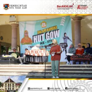 PAGAR ALAM – Pj Walikota Pagar Alam, H. Lusapta Yudha Kurnia menghadiri Peringatan Hari Ulang Tahun (HUT) Gabungan Organisasi Wanita (GOW) Kota Pagar Alam ke-5 Tahun 2024, di Lapangan Villa Ex. MTQ, Gunung Gare, Kota Pagar Alam, Jum’at (26/07/2024).