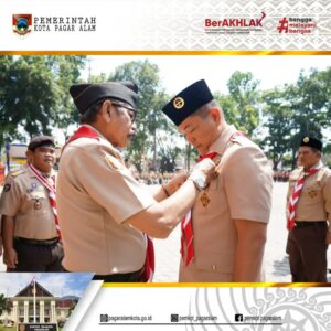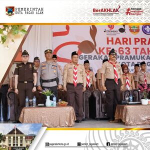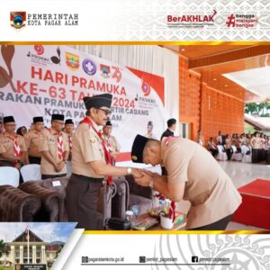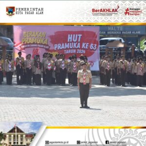 PAGAR ALAM – Peringati Hari Ulang Tahun (HUT) Pramuka ke-63 tahun 2024, Pemerintah Kota Pagar Alam bersama Gerakan Pramuka Kwartir Cabang Kota Pagar Alam menggelar upacara peringatan HUT Pramuka Ke-63 di Lapangan Merdeka, Alun-Alun Utara Kota Pagar Alam, pada Kamis (22/08/2024).