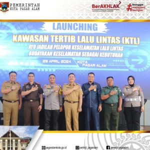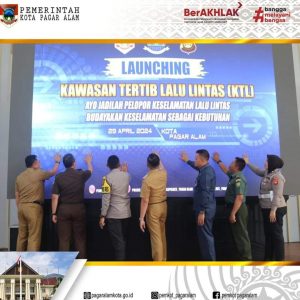 PAGAR ALAM – Pj Walikota Pagar Alam H. Lusapta Yudha Kurnia dan Pj Sekda Rano Fahlesi bersama Forkopimda Pagar Alam menghadiri launching Kawasan Tertib Lalu Lintas (KTL) yang diselenggarakan oleh Polres Pagar Alam, di Gedung SD Model Pagar Alam, pada Senin (29/04/2024).