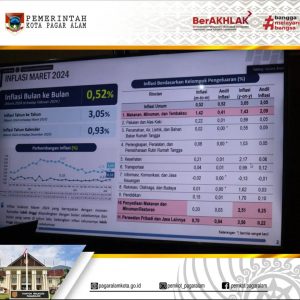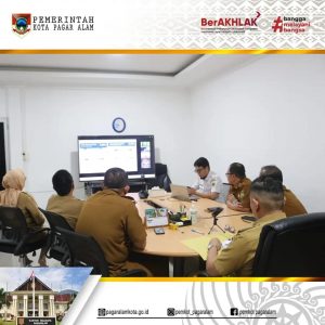 PAGAR ALAM – Pj Walikota Pagar Alam H. Lusapta Yudha Kurnia secara terpisah bersama Asisten III Bidang Administrasi Umum H. Hermawan didampingi OPD terkait mengikuti Video Conference (Vidcon) Pengendalian Inflasi Tahun 2024 oleh Kementerian Dalam Negeri (Kemendagri), pada Senin (22/04/2024).