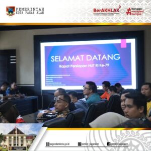 PAGAR ALAM – Dalam rangka memperingati Hari Ulang Tahun (HUT) Republik Indonesia ke-79 Tahun, Pemerintah Kota Pagar Alam menggelar Rapat HUT RI yang dipimpin langsung oleh Pj Walikota Pagar Alam H. Lusapta Yudha Kurnia didampingi Pj Ketua TP-PKK Liza Rahayu Pratiwi Yudha, dan diikuti oleh Forkopimda Pagar Alam dan jajaran Pemkot Pagar Alam, bertempat di Ruang Rapat Besemah I Setdako Pagar Alam, pada Jumat pagi (09/08/2024).