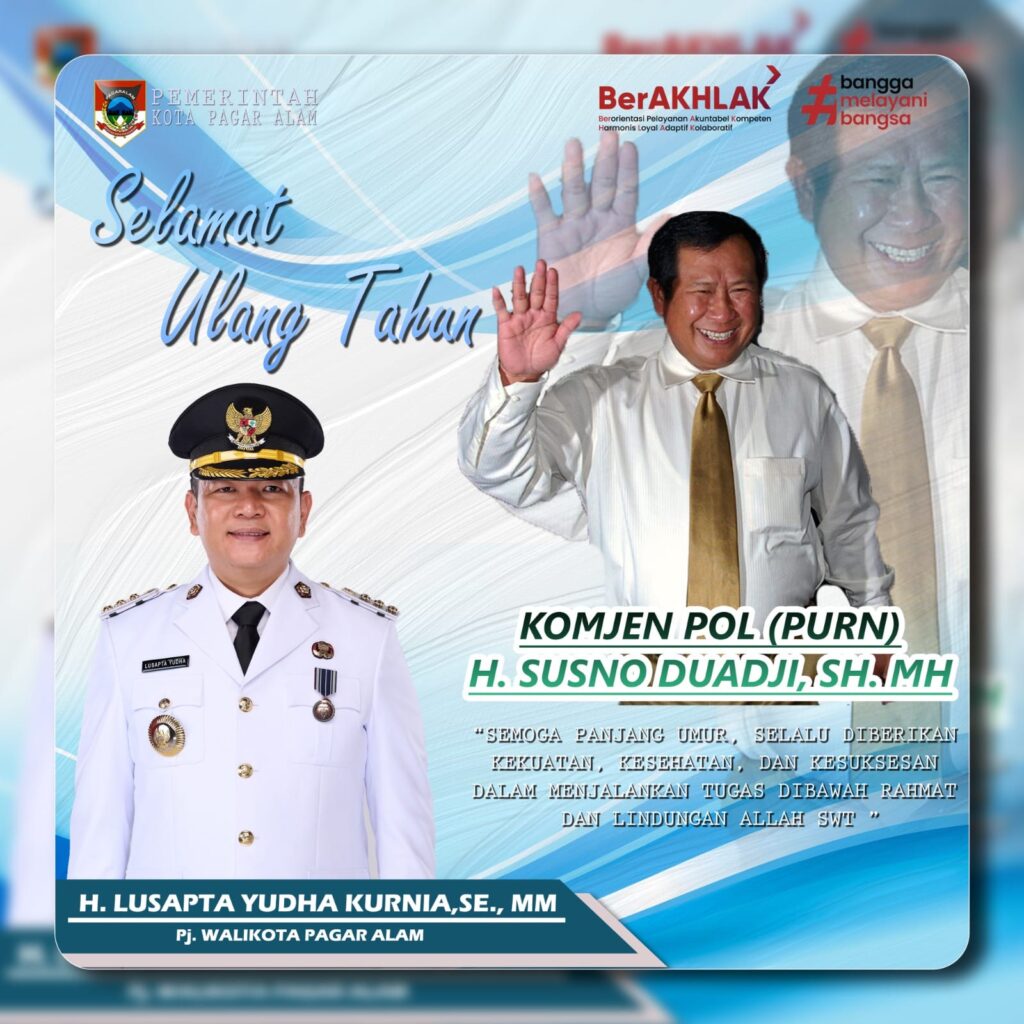 Pemerintah Kota Pagar Alam mengucapkan Selamat Ulang Tahun Komjen Pol. (Purn.) H. Susno Duadji, SH.,MH.
