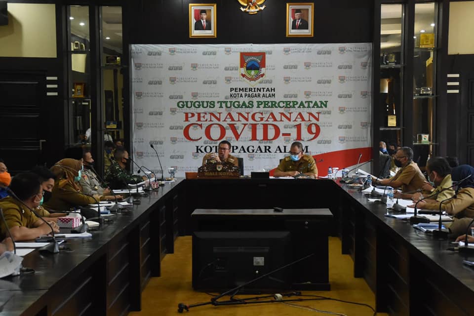 Walikota Pagar Alam Alpian Maskoni memimpin rapat koordinasi pembentukan Satuan Tugas (Satgas) Penanganan Covid 19 Kota Pagar Alam, menggantikan Gugus Tugas Percepatan Penanganan Covid 19 Kota Pagar Alam, bertempat di ruang rapat Besemah I Setdako Pagar Alam, Selasa (29/09/2020).