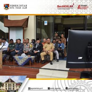 Pj Walikota H. Lusapta Yudha Kurnia bersama unsur Forkopimda dan jajaran Pemkot Pagar Alam, mengikuti secara virtual zoom meeting kegiatan launching gerakan pengendalian inflasi serentak sumatera selatan (GPISS) dan Operasi Pasar Murah (OPM) serentak di 17 Kabupaten/Kota Se-Sumsel.