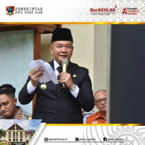PAGAR ALAM – Pj Walikota H. Lusapta Yudha Kurnia bersama unsur Forkopimda dan jajaran Pemkot Pagar Alam, mengikuti secara virtual zoom meeting kegiatan launching gerakan pengendalian inflasi serentak sumatera selatan (GPISS) dan Operasi Pasar Murah (OPM) serentak di 17 Kabupaten/Kota Se-Sumsel, bertempat di Halaman Kantor Walikota Pagar Alam, Senin (29/01/2024).