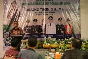 Pada sambutannya, Kajati Sumsel Sarjono Turin mengucapkan terima kasih kepada Pemkot Pagar Alam beserta Unsur Forkopimda atas sambutannya dan menyebutkan bahwa Kota Pagar Alam merupakan Kota ke-10 yang didatanginya bersama rombongan.