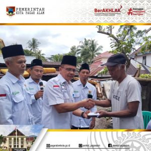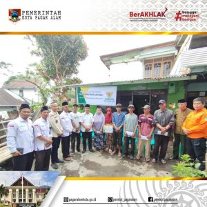 Staf Ahli bidang Kesejahteraan dan SDM Sunarto, secara simbolis mendistribusikan bantuan dari Baznas Kota Pagar Alam pada bencana kebakaran di Kampung Purwosari Belakang Obak, Pagar Alam Utara.
