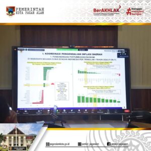 PAGAR ALAM – Pj Walikota Pagar Alam H. Lusapta Yudha Kurnia diwakili oleh Asisten II Bidang Perekonomian dan Pembangunan Sekretariat Daerah Kota (Setdako) Pagar Alam, Dawam, ikuti rapat koordinasi (rakor) Penanganan Inflasi dan TBC – Polio oleh Kementerian Dalam Negeri (Kemendagri) RI secara daring di Ruang Rapat Besemah III Setdako Pagar Alam, pada Senin (15/07/2024).