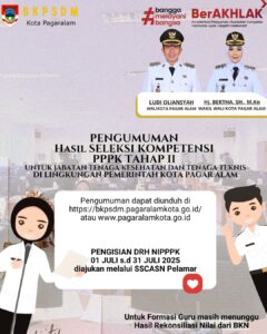 Pengumuman Hasil Seleksi Kompetensi PPPK Tahap II Untuk Jabatan Tenaga Kesehatan dan Tenaga Teknis di Lingkungan Pemerintah Kota Pagar Alam