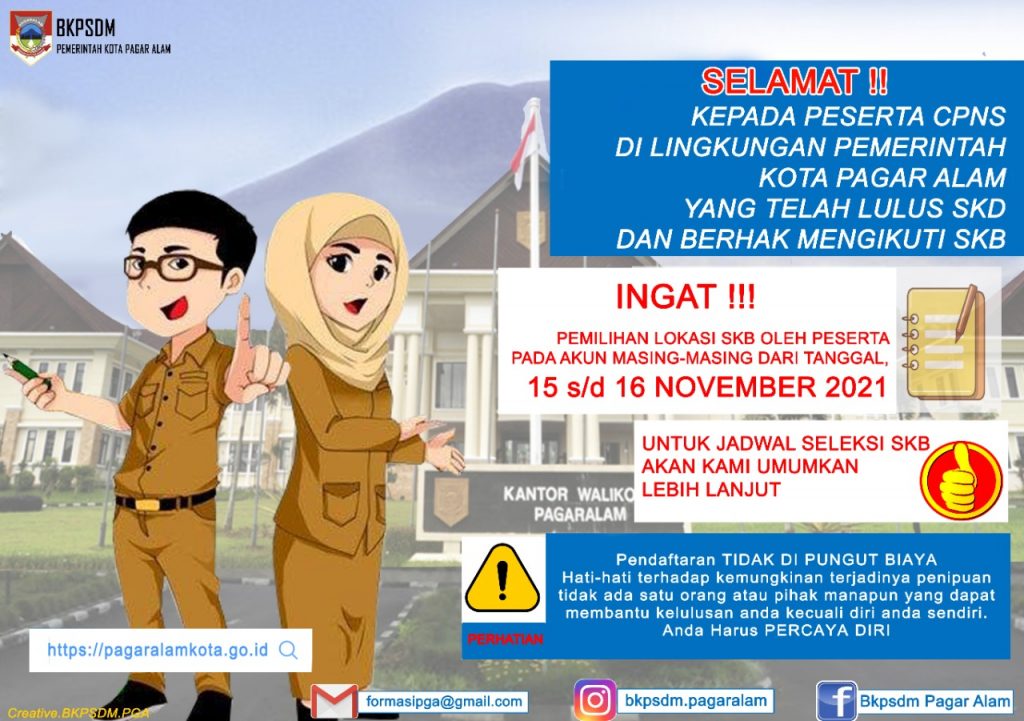 on PENGUMUMAN PEMILIHAN LOKASI SKB PESERTA CPNS DI LINGKUNGAN PEMERITAH KOTA PAGAR ALAM TA.2021