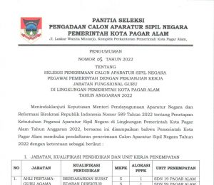 Pengumuman Seleksi Penerimaan CASN PPPK Guru Kota Pagar Alam Tahun 2022
