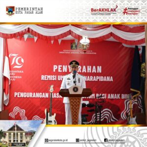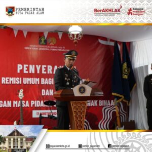 Pj Walikota Pagar Alam H. Lusapta Yudha Kurnia bersama Forkopimda Kota Pagar Alam, menghadiri acara pemberian Remisi umum bagi warga binaan Lembaga Pemasyarakatan (Lapas) Kelas III Pagar Alam, yang berlokasi di Kelurahan Beringin Jaya, Kecamatan Pagar Alam Utara, Kota Pagar Alam, Sabtu (17/08/2024).