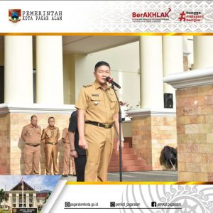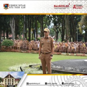 PAGAR ALAM – Pj Wali Kota Pagar Alam H. Lusapta Yudha Kurnia pimpin apel awal bulan pada bulan Februari Tahun 2024, dengan diikuti oleh seluruh ASN, di Halaman Kantor Wali Kota Pagar Alam, Senin (05/02/2024).