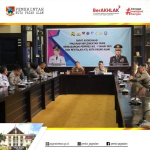 PAGAR ALAM – Pj Wali Kota Pagar Alam H. Lusapta Yudha Kurnia memimpin Rapat Lintas Sektoral terkait Implementasi Rencana Umum Nasional Keselamatan Lalu Lintas dan Angkutan Jalan (RUNK LLAJ) dan Revitalisasi Kota Tertib Lalulintas (KTL) di Kota Pagar Alam Tahun 2024, bertempat di Ruang Rapat Besemah Satu, Kantor Wali Kota Pagar Alam, Senin (26/02/2024).
