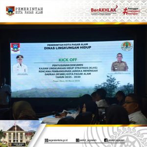 PAGAR ALAM – Pj Sekretaris Daerah (Sekda) Kota Pagar Alam Rano Fahlesi mengikuti Rapat Kick Off dan Uji Publik I (Satu) penyusunan Kajian Lingkungan Hidup Strategis (KLHS) Rencana Pembangunan Jangka Menengah Daerah (RPJMD) Kota Pagar Alam Tahun 2025-2030, Bertempat di Ruang Rapat Besemah I, Rabu (6/03/2024).