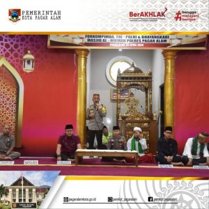 PAGAR ALAM – Pj Sekretaris Daerah (Sekda) Pagar Alam Rano Fahlesi menghadiri kegiatan Nuzulul Qur’an 1445 H / 2024 M dan buka puasa bersama dengan Seluruh Jajaran Polres Pagar Alam, di Masjid Al-Hikmah Mapolres Pagar Alam, Rabu (03/04/2024).