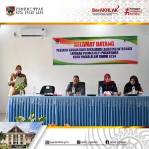 PAGAR ALAM – Pj Sekretaris Daerah (Sekda) Kota Pagar Alam Dahnial Nasution, Membuka Sosialisasi sekaligus Melaunching Integritas Layanan Primer (ILP) Puskesmas Kota Pagar Alam, Bertempat di Gedung Aula, Kantor Dinas Kesehatan, Kota Pagar Alam, Selasa (15/10/2024).