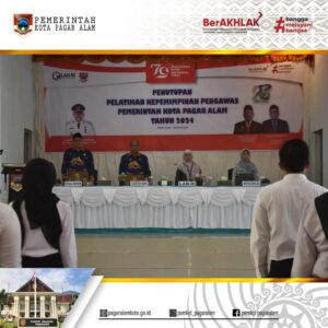 Sebanyak 40 Pejabat Struktural yang terdiri dari 27 laki-laki dan 13 perempuan di Lingkungan Pemerintah Kota Pagar Alam, telah selesai mengikuti Pelatihan Kepemimpinan Pengawasan yang telah berlangsung selama 4 bulan, terhitung sejak tanggal 17 April – 1 Agustus 2024. Kegiatan ditutup dengan pelepasan tanda peserta secara simbolis oleh Pj Sekda kota Pagar Alam Dahnial Nasution.