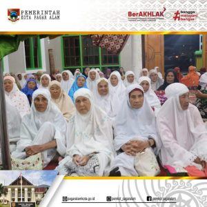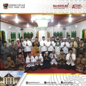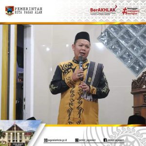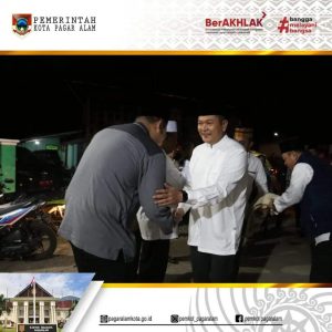 Pj Walikota Pagar Alam H. Lusapta Yudha Kurnia didampingi Pj Ketua TP PKK Liza Rahayu Pratiwi Yudha safari Ramadhan di Masjid Al-Ghofuur Pelang Kenidai.