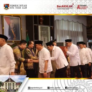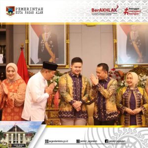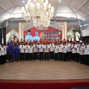 PALEMBANG – Pj Walikota Pagar Alam H. Lusapta Yudha Kurnia bersama Kapolres Pagar Alam AKBP Erwin Aras Genda, Pj Sekda Rano Fahlesi beserta Ketua TP PKK, Ketua Dharma Wanita Persatuan, para Asisten, Staf Ahli, Kepala OPD dan Kepala Bagian di lingkungan Pemkot Pagar Alam, mendatangi kegiatan Open House Hari Raya Idul Fitri 1445 H, yang digelar Pj Gubernur Sumatera Selatan (Sumsel) Agus Fatoni, di Griya Agung Kota Palembang, Kamis (11/04/2024).