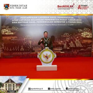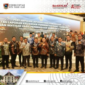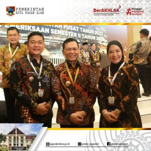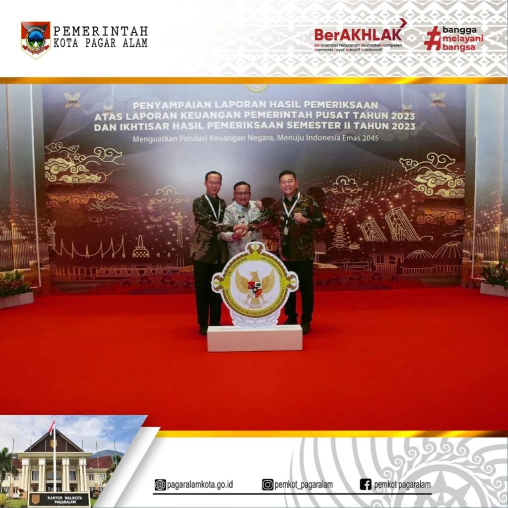 JAKARTA – Pj.Wali Kota Pagar Alam H. Lusapta Yudha Kurnia, SE., MM bersama Ketua DPRD Hj. Jenni Shandiyah, SE., MH, Menghadiri Kegiatan Acara Penyampaian Laporan Hasil Pemeriksaan atas Laporan Keuangan Pemerintah Pusat (LKPP) Tahun 2023 dan Ikhtisar Hasil Pemeriksaan Semester II Tahun 2023. dengan mengusung tema Menguatkan Fondasi Keuangan Negara, Menuju Indonesia Emas 2045. Di Ballroom Jakarta Convention Center (JCC) Jakarta 08/07/2024.