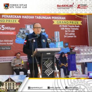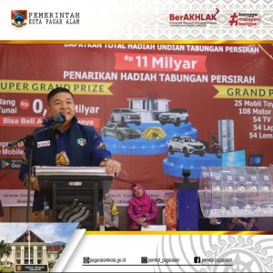 Pj Walikota Pagar Alam H. Lusapta Yudha Kurnia hadiri sekaligus buka acara undian Super Grand Prize Tabungan Pesirah dari Bank Sumsel Babel.
