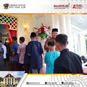 PAGAR ALAM – Pj Walikota Pagar Alam H. Lusapta Yudha Kurnia beserta keluarga menggelar acara Open House Hari Raya Idul Fitri 1445 Hijriah bersama Forkopimda, jajaran Pemkot dan masyarakat Pagar Alam, di Griya Teguwangi Rumah Dinas Walikota Pagar Alam, Rabu (10/04/2024). [Rls/Humas Diskominfo]