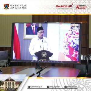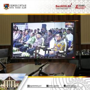 Pj Walikota Pagar Alam H. Lusapta Yudha Kurnia, mengikuti vidcon peluncuran Laporan Tahunan 2023 Ombudsman RI.