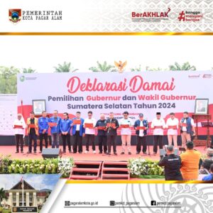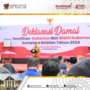 Pj.Walikota Pagar Alam Drs.Nelson Firdaus,MM menghadiri acara Deklarasi Damai Pemilihan Gubernur dan Wakil Gubernur Provinsi Sumatera Selatan. Bertempat di Griya Agung Palembang. Pada Senin, (18/11/2024).