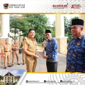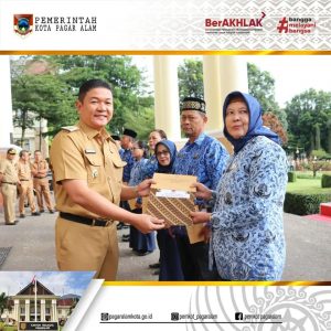 Sebelum apel pagi dilaksanakan, Pj Walikota Yudha menyerahkan Piagam Penghargaan dan Kartu Pensiun beserta rincian Tunjangan Hari Tua kepada delapan orang pensiunan PNS Kota Pagar Alam purna tugas bulan Januari 2024.(Humas Diskominfo)