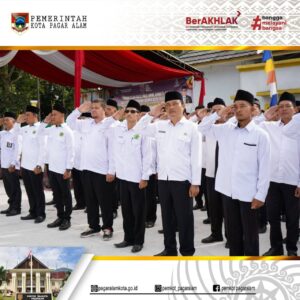 PAGAR ALAM – Pj Wali Kota Pagar Alam Nelson Firdaus, bertindak sebagai Inspektur Upacara sekaligus membacakan amanat dari Menteri Agama Republik Indonesia Nasaruddin Umar pada pelaksanaan Upacara Memperingati Hari Amal Bakti ke-79 Tahun 2025, di halaman kantor Kementerian Agama Kota Pagar Alam, Jum’at (3/1/2025).