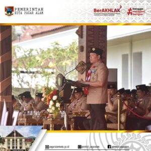 Pj Walikota Yudha Ikuti peringatan Hari Pramuka ke-63.