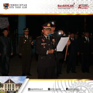 Dalam apel kehormatan dan renungan suci tersebut, Kapolres Pagar Alam AKBP Erwin Aras Genda bertindak sebagai Inspektur Upacara, dan diikuti oleh Pj Wali Kota Pagar Alam H. Lusapta Yudha Kurnia bersama Forkopimda, Pj Sekda, Asisten Setdako, Staf Ahli Wali Kota, Ka OPD Pagar Alam, Jajaran TNI/Polri dan anggota Satuan Pol PP.