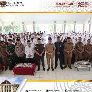 Pj Walikota Pagar Alam H. Lusapta Yudha Kurnia didampingi Pj Sekda Rano Fahlesi menghadiri acara jamuan dan pelepasan calon jamaah haji Kota Pagar Alam Tahun 2024, bertempat di Aula MTQ Gunung Gare Kota Pagar Alam, Selasa (14/05/2024).
