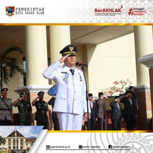 Pj Wali Kota Pagar Alam H. Lusapta Yudha Kurnia bertindak sebagai Inspektur Upacara dalam rangka memperingati hari Otonomi Daerah (Otda) ke-28, yang dilaksanakan Pemerintah Kota (Pemkot) Pagar Alam di Halaman Kantor Wali Kota Pagar Alam, Kamis Pagi (25/04/2024).