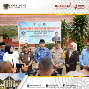 PAGAR ALAM – Pj Wali Kota Pagar Alam Nelson Firdaus, bersama unsur Forkopimda launching Makan Bergizi Gratis (MBG) di Sekolah Dasar Negeri (SDN) 64, kelurahan Dempo Makmur, Senin (17/02/2025).