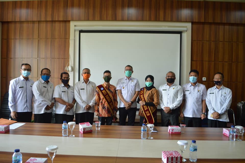 Walikota Pagar Alam Alpian Maskoni menerima audiensi Duta Bahasa Sumatera Selatan M Hafiz Al Furqon dan Wafiq Febri Erlianti Safitri, bertempat di ruang rapat Besemah III Setdako Kota Pagar Alam, Rabu (16/09/2020).