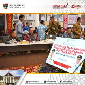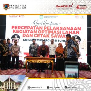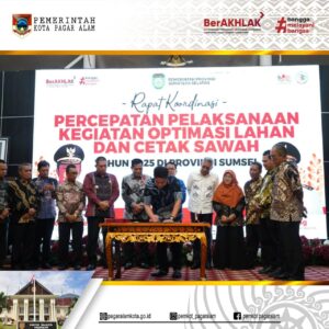 PAGAR ALAM – Wali Kota Pagar Alam, Ludi Oliansyah, didampingi oleh Kepala Dinas Pertanian Kota Pagar Alam, menghadiri Rapat Koordinasi Percepatan Pelaksanaan Kegiatan Optimasi Lahan dan Cetak Sawah Tahun 2025 di Provinsi Sumatera Selatan. Kegiatan ini dilaksanakan di Griya Agung Palembang.