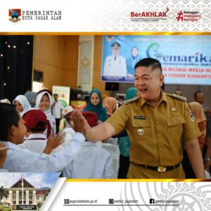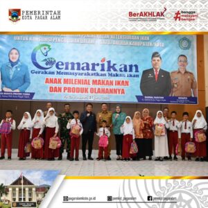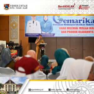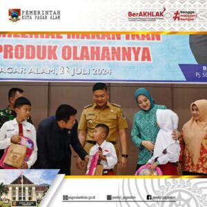 PAGAR ALAM – Pj Walikota Pagar Alam H. Lusapta Yudha Kurnia didampingi oleh Pj Ketua TP-PKK kota Pagar Alam Liza Rahayu Pratiwi Yudha hadiri sekaligus buka kegiatan Penyerahan Paket Olahan Gerakan Memasyarakatkan Makan Ikan (GEMARIKAN) Tahun 2024, yang diselenggarakan oleh Dinas Ketahanan Pangan dan Perikanan. Bertempat di Gedung Balai Kota Pagar Alam, pada Senin (22/07/2024).