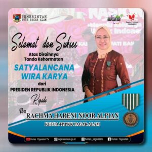 Selamat dan Sukses kepada Ketua TP PKK Kota Pagar Alam, Rachma Hareni Noor Alpian, atas penghargaan Tanda Kehormatan Satyalancana Wira Karya (SWK) Bidang Pembangunan Keluarga, Kependudukan Dan Keluarga Berencana (Bangga Kencana) Tahun 2023