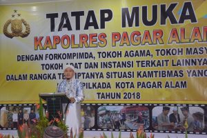 Kapolres Pagaralam AKBP Dwi Hartono, SIK. MH, kembali melaksanakan tatap muka dengan Pj Walikota Pagar Alam Musni Wijaya, Forkompimda, jajaran Pemkot Pagar Alam, Tokoh Agama, Tokoh Masyarakat, Tokoh Adat, dan instansi terkait lainnya, dalam rangka terciptanya situasi Kamtibmas yang kondusif dalam Pilkada Kota Pagar Alam Tahun 2018, di ruangan Wirasatya 96 Mapolres Pagar Alam, Kamis sore (24/5).