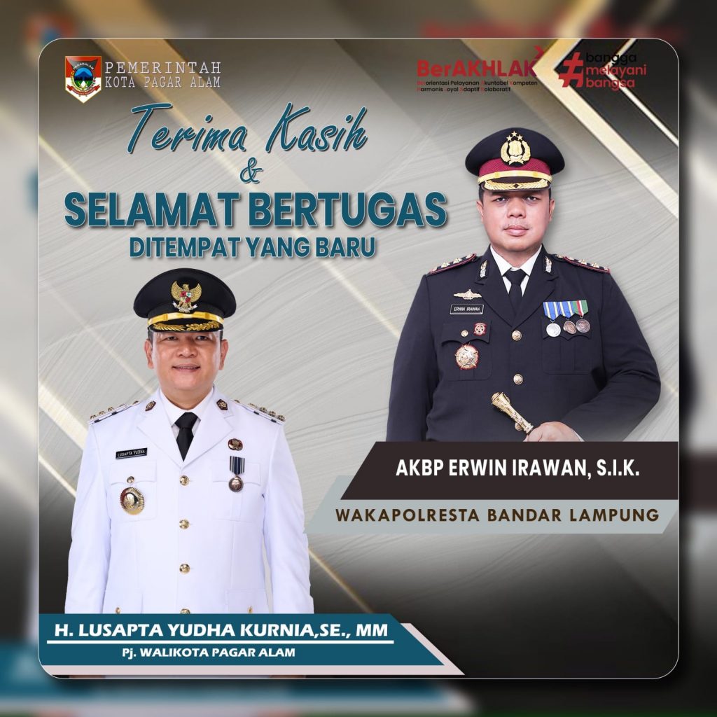 Terimakasih atas Pengabdian, Dedikasi serta Sinergitas selama menjabat Kapolres Pagar Alam dan Selamat Bertugas di tempat baru Bapak AKBP. Erwin Irawan, S.I.K sebagai Wakapolresta Bandar Lampung.