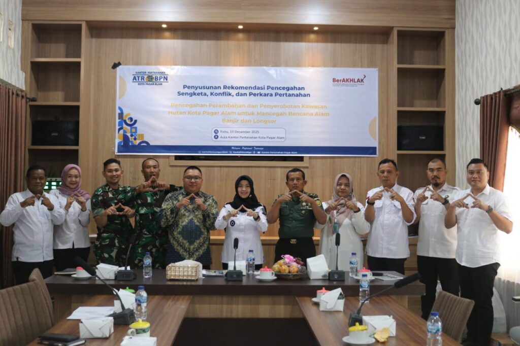 PAGAR ALAM – Wakil Wali Kota Pagar Alam Hj. Bertha, mengikuti rapat Penyusunan Rekomendasi Pencegahan Sengketa, Konflik dan Perkara Pertanahan di Kota Pagar Alam, bertempat di Aula Kantor Badan Pertanahan Nasional Kota Pagar Alam, Rabu, 10 Desember 2025.