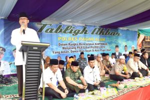 Walikota Alpian Maskoni menghadiri Tabligh Akbar yang digelar Polres Pagar Alam, dalam rangka menciptakan KAMTIBMAS menjelang PILEG dan PILPRES 2019. Tabligh Akbar yang diisi tausyiah dari Ustadz H. Jamil Rusdi ini, digelar di Halaman Mapolres Pagar Alam, Kamis (14/2/2019).