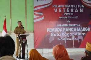 PAGAR ALAM – Wali Kota Pagar Alam Alpian Maskoni menghadiri pelantikan Dewan Pimpinan Cabang Legiun Veteran RI dan PIVERI Regional Kota Pagar Alam periode 2021/2026, sekaligus pelantikan Ketua Pemuda Panca Marga Kota Pagar Alam periode 2022-2027, bertempat di Gedung Serbaguna Rumah Dinas Sekda Kota Pagar Alam Koramil Lama, senin (19/12/2022).