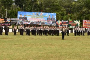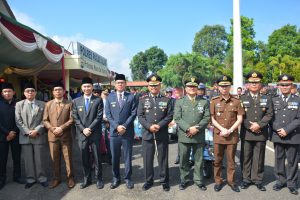 Walikota Alpian Maskoni saat membacakan sambutan Presiden RI Joko Widodo (Jokowi), menyampaikan lima amanat. Pertama Presiden meminta Polri untuk meningkatkan sumber daya manusia guna menghadapi berbagai tantangan tugas yang semakin kompleks.