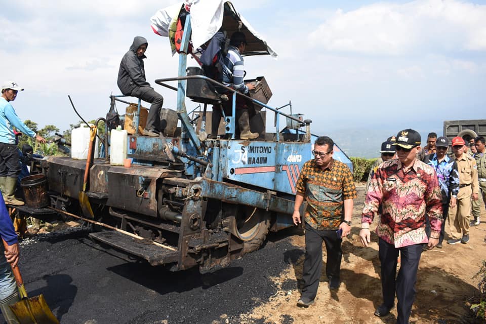 Walikota Pagar Alam Alpian Maskoni meninjau langsung proses pengaspalan di jalan menuju Kampung IV Kecamatan Pagar Alam Selatan, Rabu (2/9/2019). Jalan ini juga dikenal sebagai jalur pendakian menuju puncak Gunung Dempo.